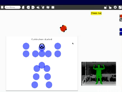 Ricardo Moran was a member of the team from the Grupo de Investigación en Robótica Autónoma at CAETI in Argentina who won the 2010 ESUG Innovation Technology Awards with Physical Etoys, their Arduino-based interface to Squeak which allowed them to monitor and control robots as they drove round the conference hall. They spent their prize money wisely, buying a Kinect! Building on the work done by Stephen Howell in getting the Kinect working with Scratch (a visual programming environment developed at MIT), they have now shown how to use the Kinect to control activities in Etoys, using the existing OSCeleton framework to provide the skeleton interpretation interface. Their approach is documented in more detail on their blog.