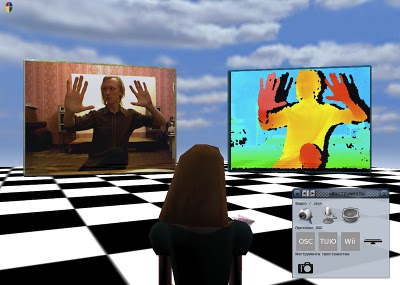 Another approach to integrating data from the Kinect is that taken in Nikolay Suslov’s separate and equally impressive implementation which uses the lower-level OpenKinect driver to access the raw colour and depth information and pass this into his bespoke Krestianstvo images, where he then does the detailed video processing and interpretation in Smalltalk, which reduces his reliance on external, platform-specific code. His blog gives more details of his implementation as well as source code, and pre-built images.