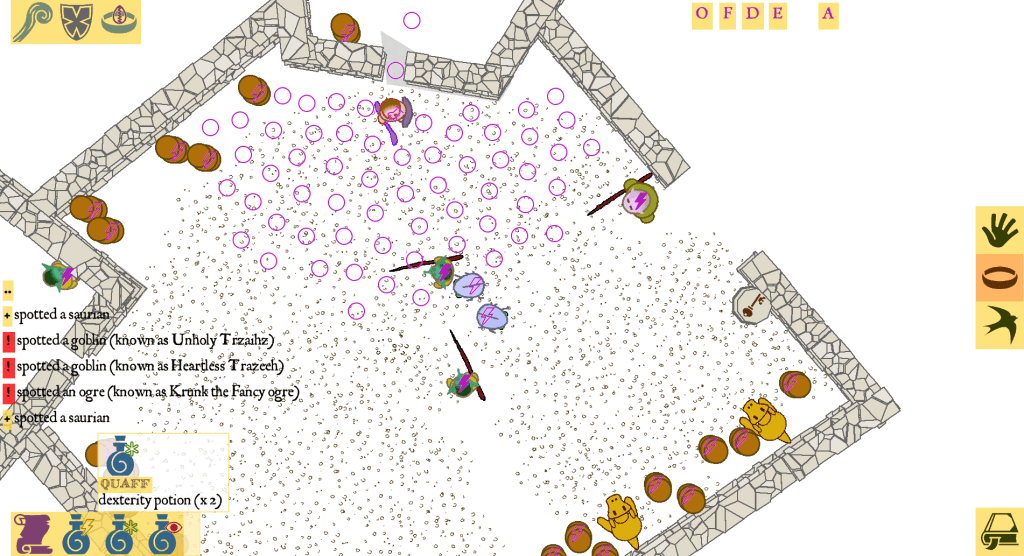In Roguerrants, each monster class uses its own synthesizer and actually plays musical notes. Its utterances are composed with muO. I can generate adaptive music, although this is still in an early stage.